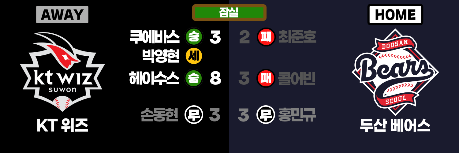 KT 선발은 우완 쿠에바스, 두산 선발은 우완 최준호