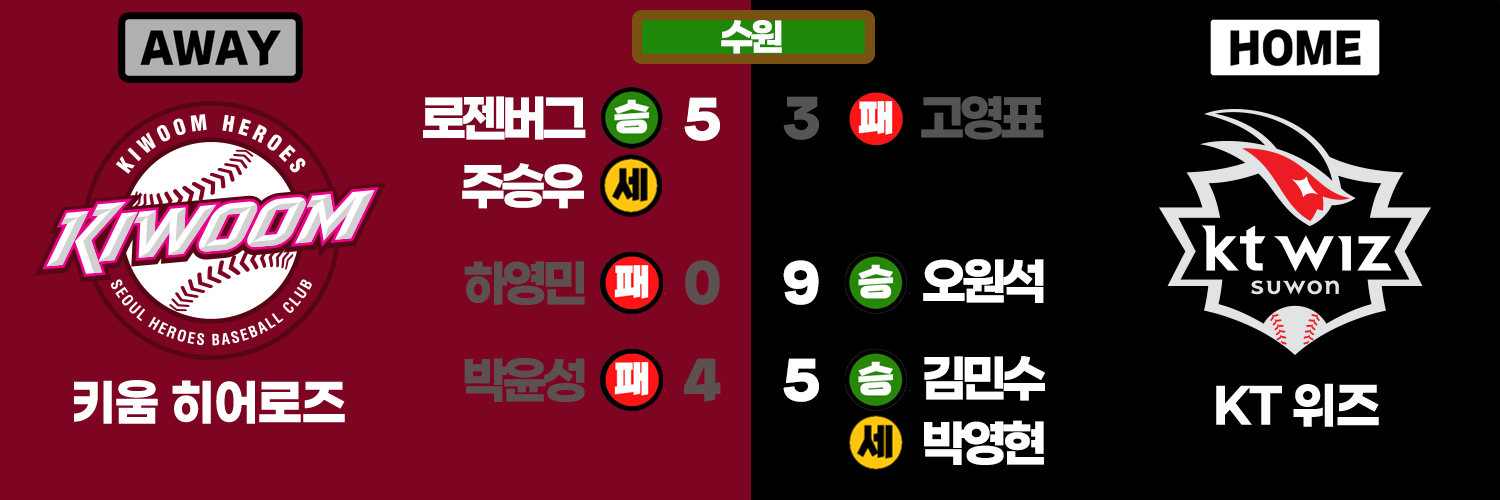 키움의 토종 선발을 무너뜨린 KT의 타선과 이에 보답한 오원석과 불펜진의 무실점 호투