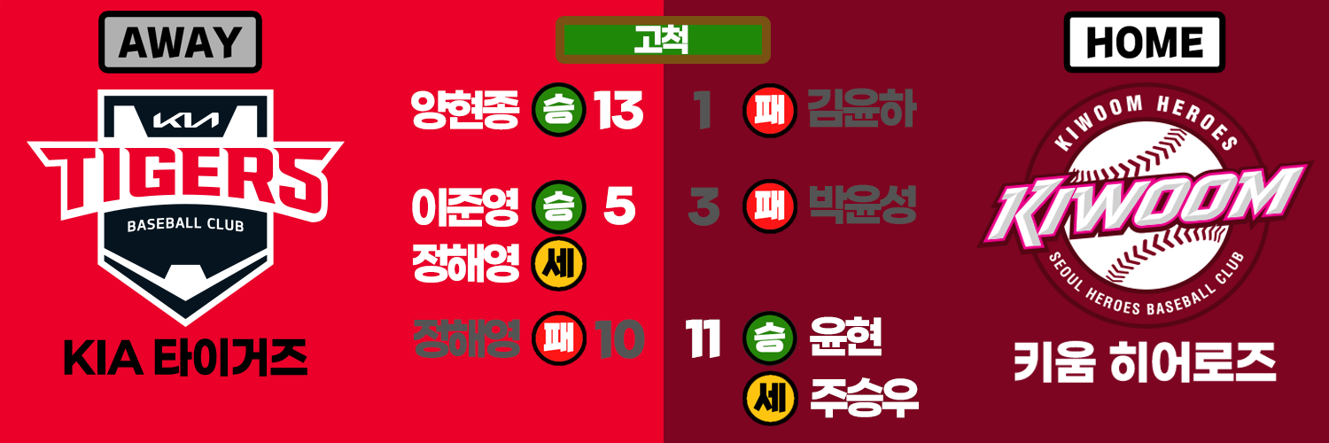 KIA 선발은 좌완 양현종, 키움 선발은 우완 김윤하