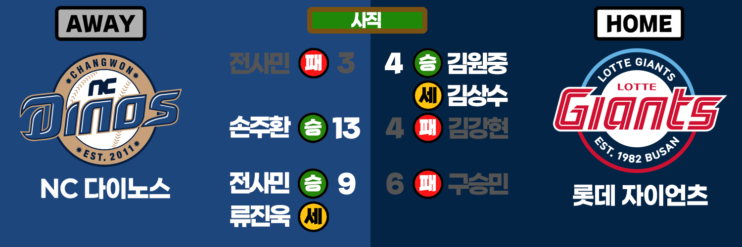 NC 선발은 우완 신민혁, 롯데 선발은 우완 박진