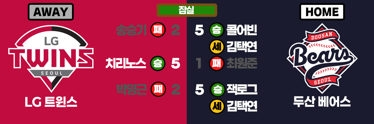 LG 선발은 좌완 송승기, 두산 선발은 좌완 콜어빈