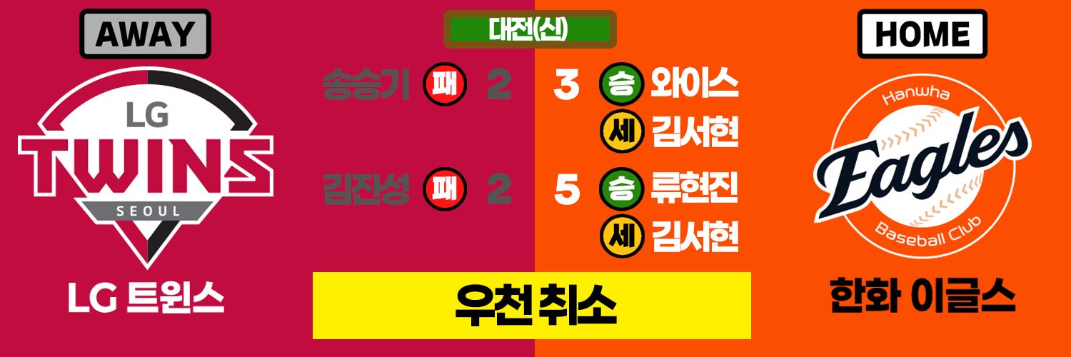 LG 선발은 좌완 송승기, 한화 선발은 우완 와이스