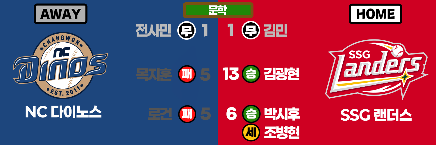 - 5회 데이비슨의 솔로 홈런으로 동점을 만드는데 성공한 NC, 곧바로 2점을 도망가는 SSG (고명준의 4타수 4안타)