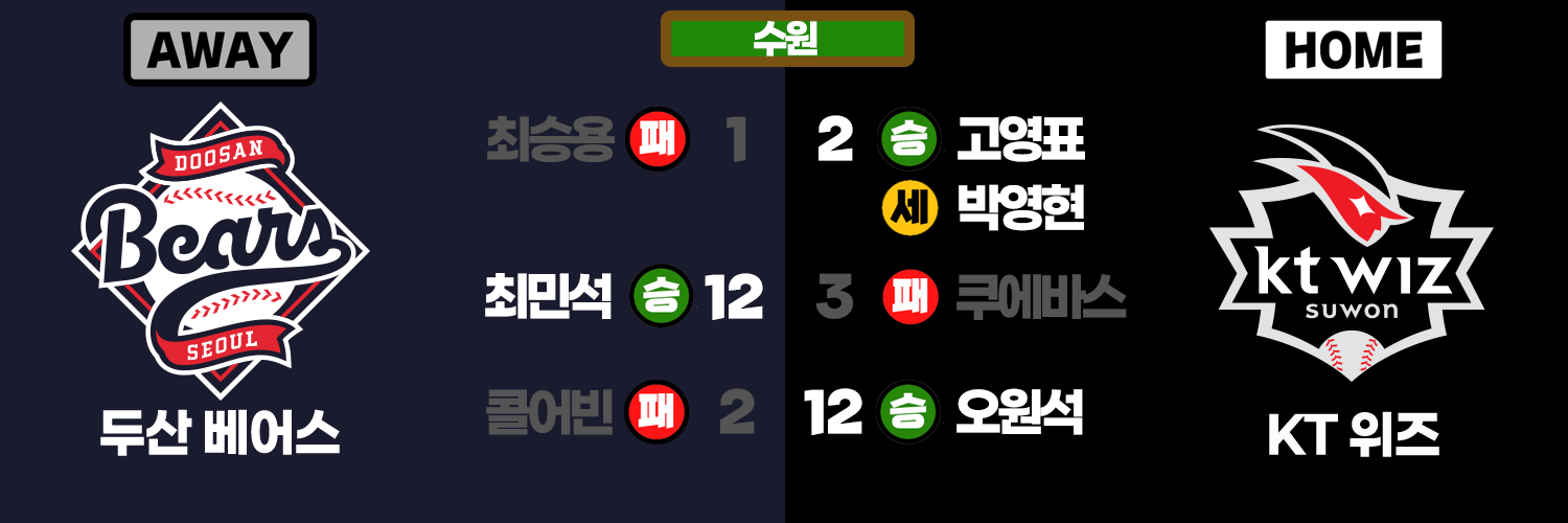 두산 선발 : 최민석 / KT 선발 : 쿠에바스