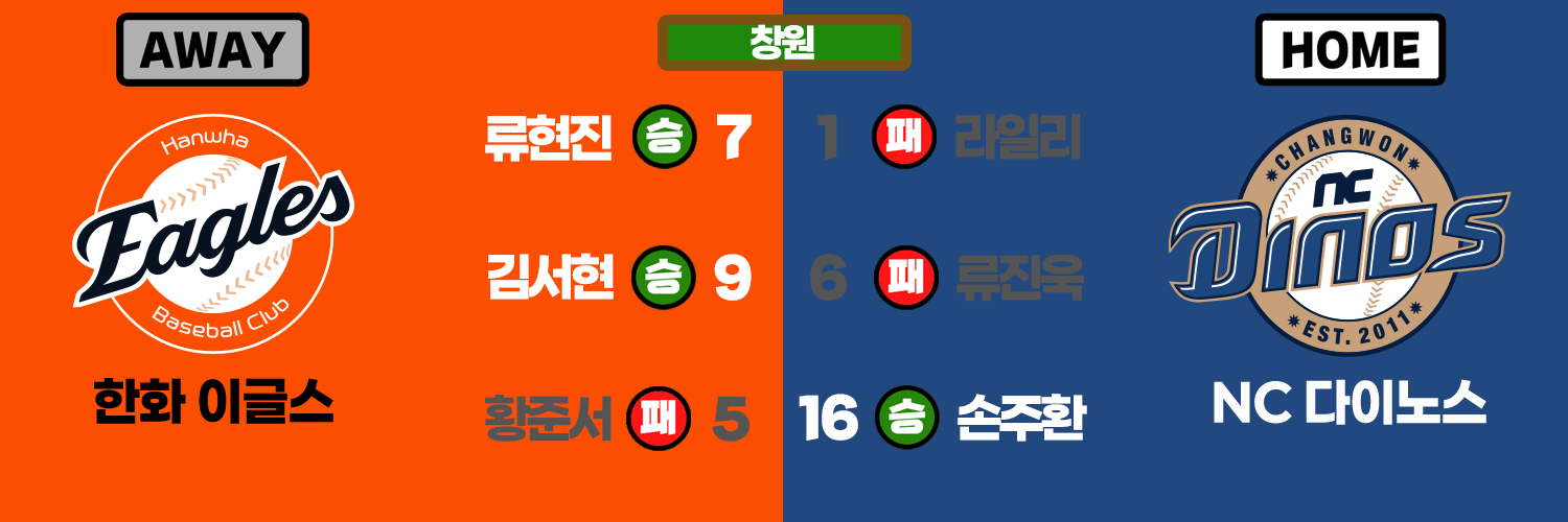 - 8회 최재훈의 포일로 역전에 성공한 NC, 하지만 류진욱이 흔들리면서 6 실점한다. 한화 김서현도 3 실점으로 흔들렸지만 승리
