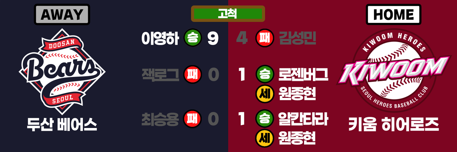 - 두산 선발 : 최원준 / 키움 선발 : 김선기